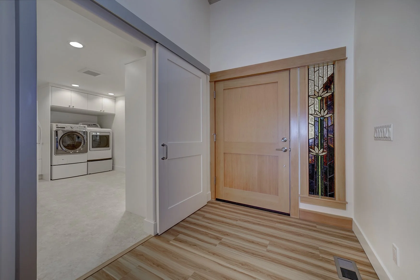 This comprehensive renovation project in a mid-1970s house involved the complete overhaul of the top floor. The renovation included 1.5 remodeled bathrooms, a fully updated kitchen, living room, and laundry area.